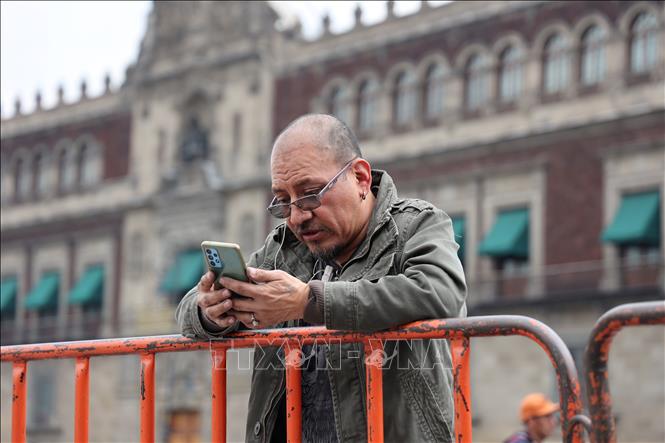 Un mexicano utiliza teléfono inteligente en la Ciudad de México. (Foto: VNA) |