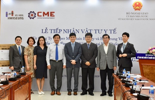 El acto de entrega de suministros médicos para los vietnamitas en Corea del Sur (Foto: VNA) |
