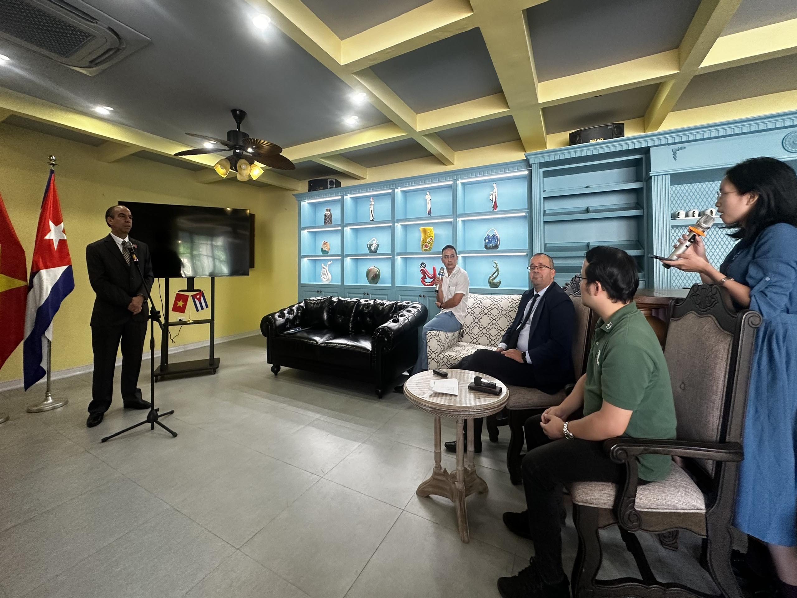 Periodistas preguntan al embajador cubano en Vietnam, Rogelio Polanco Fuentes, durante la rueda de prensa. (Foto: Embajada de Cuba en Vietnam) |