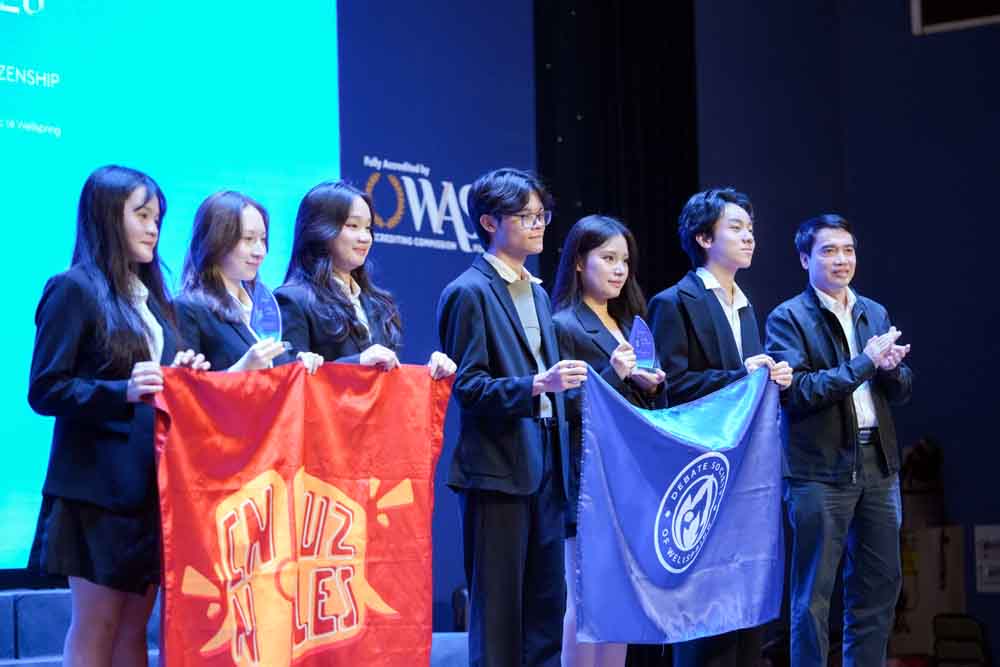 En la sección de debate Debate Showcase, los alumnos analizan un tema clave: “¿La mejor forma de proteger a los menores en Internet es fomentar desde edades tempranas la educación digital o reforzar el control estatal?". (Foto: Wellspring Hanoi) |