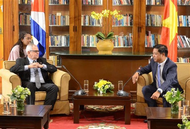 El presidente del Consejo Popular de Da Nang, Luong Nguyen Minh Triet, recibe a Homero Acosta Álvarez, secretario de la Asamblea Nacional del Poder Popular y del Consejo de Estado de Cuba. (Foto: VNA) |