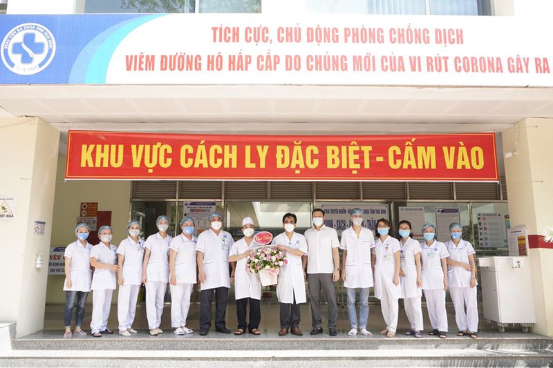 Médicos del Hospital General de Thai Binh felicitan a los pacientes del nuevo coronavirus dados de alta. (Foto: VOV) |