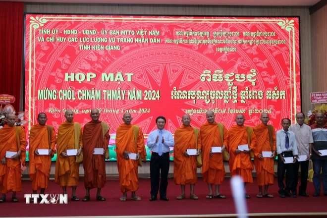 En su intervención, el titular destacó que, gracias a la atención del Partido y el Estado, y de la administración local, la vida material y espiritual del pueblo Jemer continúa mejorando. Expresó también su deseo de que los compatriotas jemeres y los monjes locales seguirán promoviendo el espíritu de patriotismo, la solidaridad nacional y adoptando el espíritu de autosuficiencia, resiliencia y entusiasmo en sus esfuerzos laborales y productivos, para construir vidas prósperas y felices, y además de mantenerse unidos con otros grupos étnicos para cumplir las metas de desarrollo socioeconómico de la localidad para este año.
