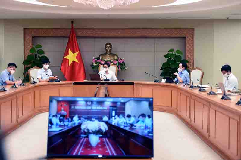 El viceprimer ministro Vu Duc Dam, jefe del Comité Directivo Nacional para la Prevención y el Control del covid-19 (tercero a la izquierda), preside la reunión. (Foto: VGP) |