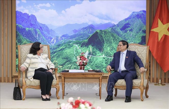 El primer ministro Pham Minh Chinh recibe a Manuela V. Ferro, vicepresidenta del Banco Mundial. (Foto: VNA) |