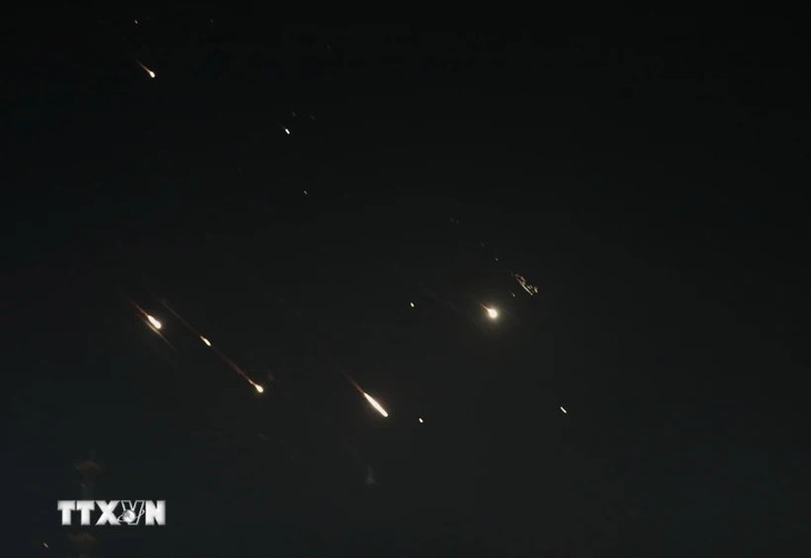 El sistema antimisiles israelí intercepta cohetes el 13 de abril de 2024. (Foto: VNA) |