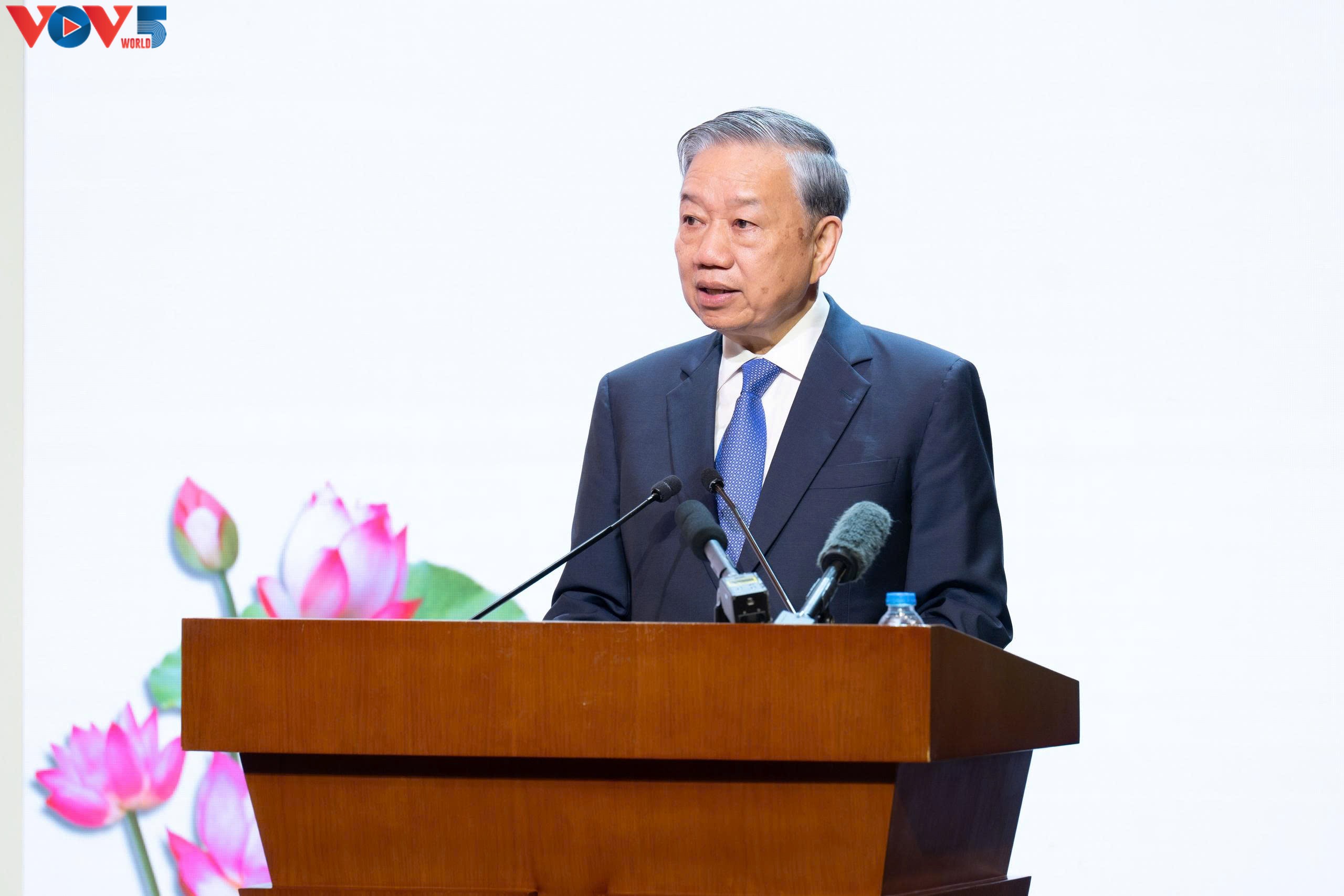 El secretario general del Partido Comunista, To Lam, pronuncia su discurso durante la ceremonia. Foto: VOV |
