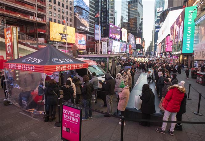 Ciudadanos hacen cola en espera de ser sometidos a la prueba de covid-19 en Nueva York, Estados Unidos el 20 de diciembre de 2021. (Foto: Xinhua/VNA) |