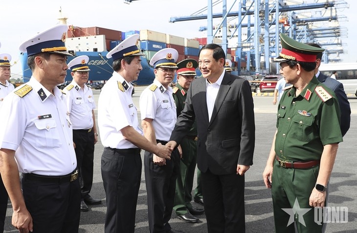 Los líderes de la Armada vietnamita y de la Corporación Portuaria de Saigón reciben al primer ministro de Laos, Sonexay Siphandone. (Foto: qdnd.vn) |