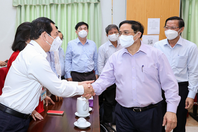 El primer ministro Pham Minh Chinh en encuentro con representantes del sector de la salud de Ciudad Ho Chi Minh. (Foto: VGP) |