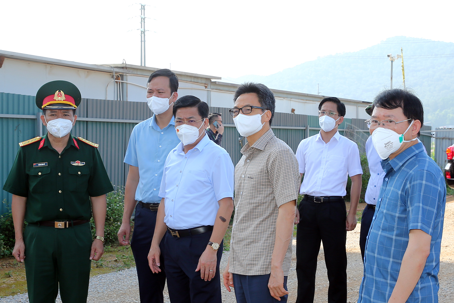 El vicepremier Vu Duc Dam (cuarto a la izquierda) visita una zona en bloqueo en la provincia norteña de Bac Giang (Foto: VGP) |