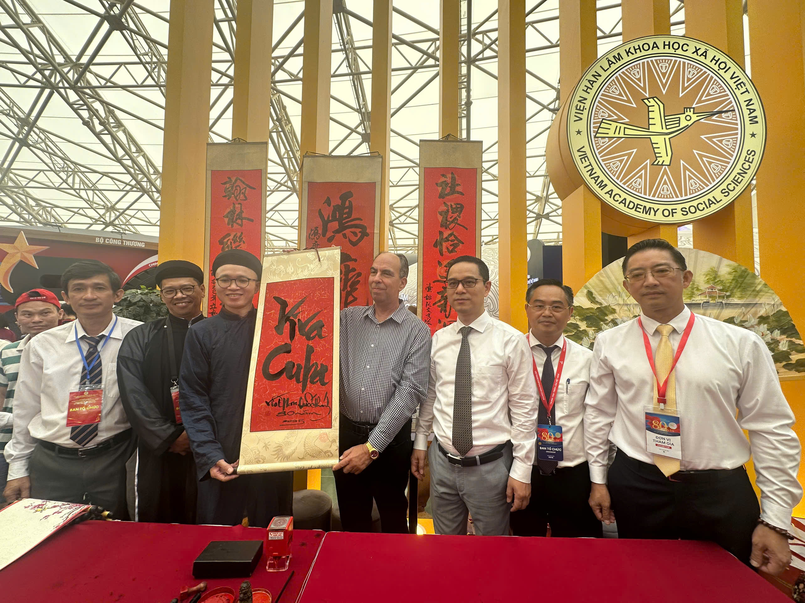 En el pabellón de la Academia de Ciencias Sociales de Vietnam (VASS), socio tradicional de la Embajada de Cuba, el diplomático experimentó la elaboración de la pintura popular Dong Ho y el arte de caligrafía. Allí destacó la labor de la institución en la investigación, conservación documental y asesoría en políticas públicas, al tiempo que reiteró la voluntad de reforzar la cooperación bilateral mediante el intercambio de expertos y la realización de estudios conjuntos.