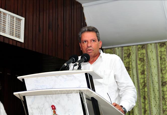 El miembro del Secretariado del Comité Central del Partido Comunista de Cuba, Víctor Gaute López interviene en el seminario (Foto: VNA)