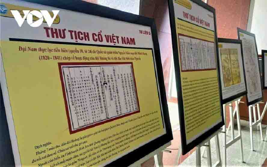 Numerosas bibliografías antiguas y documentos sobre mares e islas de Vietnam se muestran en la exposición. |