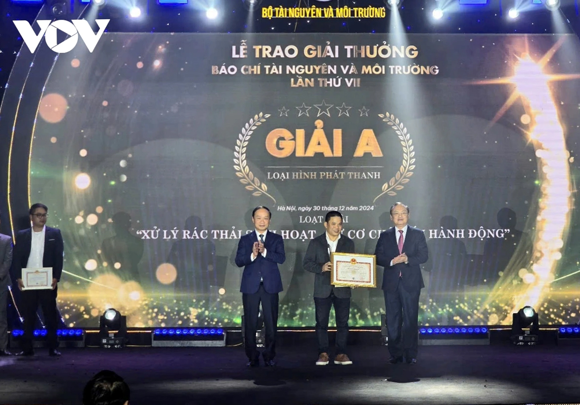 El periodista Hoang Quang Huy, del Canal de Actualidad General y Política VOV1 de la Voz de Vietnam gana el premio A con su obra "Tratamiento de residuos domésticos - Del mecanismo a la acción". |
