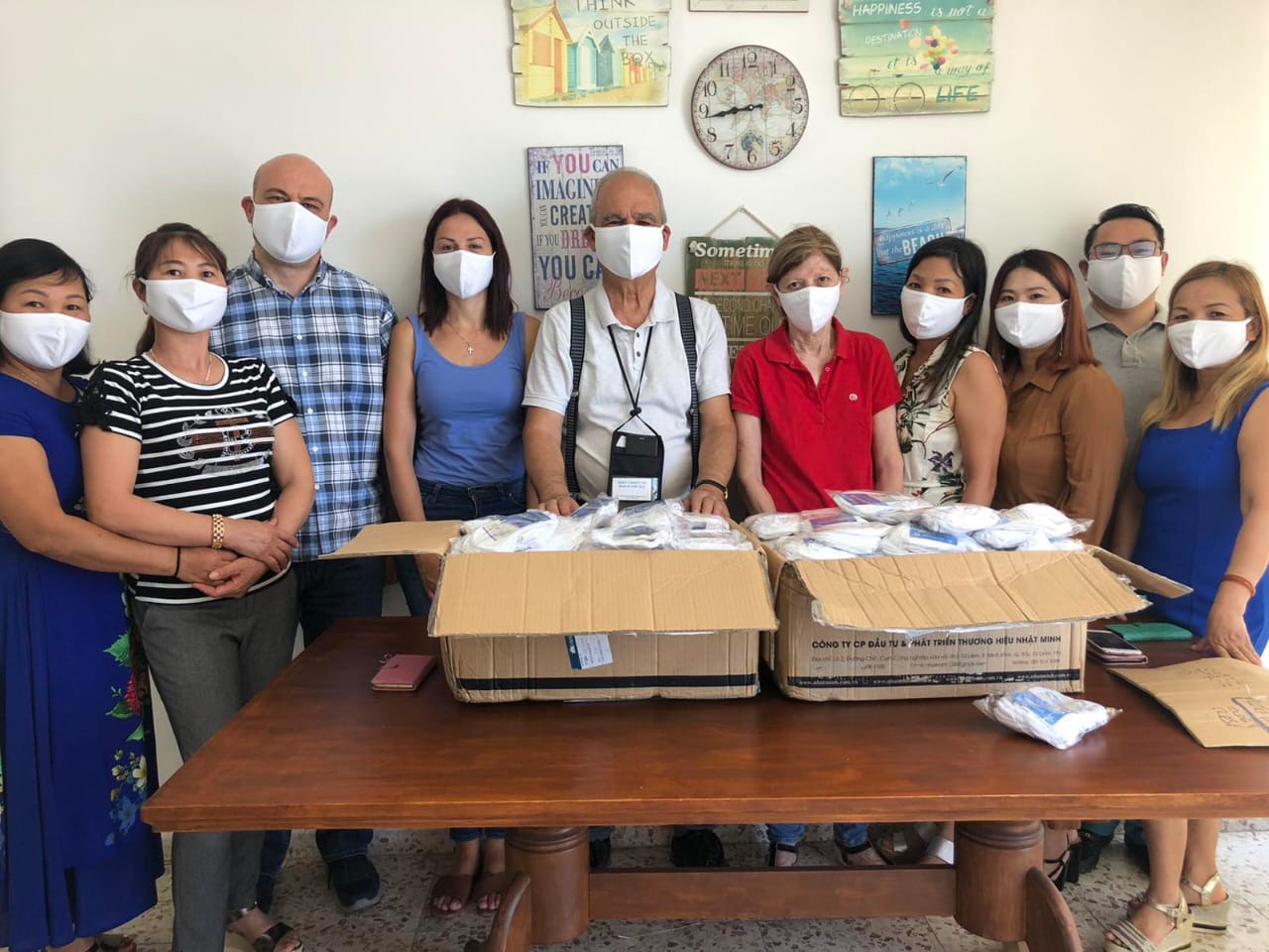 El cónsul honorífico de Vietnam en la República de Chipre, Georges Christophides, entrega mascarillas a la comunidad vietnamita en ese territorio. (Foto: Embajada vietnamita en Italia) |