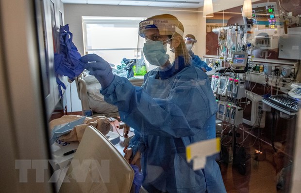 El personal médico trata a pacientes infectados con covid-19 en un hospital en Hartford, Connecticut, Estados Unidos. (Foto: AFP/VNA) |