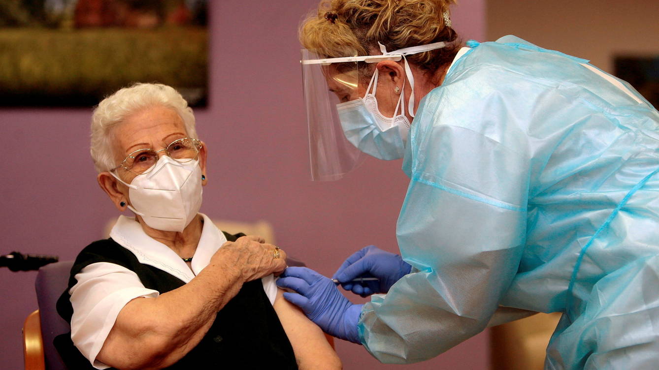 Araceli Rosario Hidalgo, una mujer de 96 años es la primera española en recibir la primera dosis de la vacuna contra el covid-19. (Foto: Reuters)