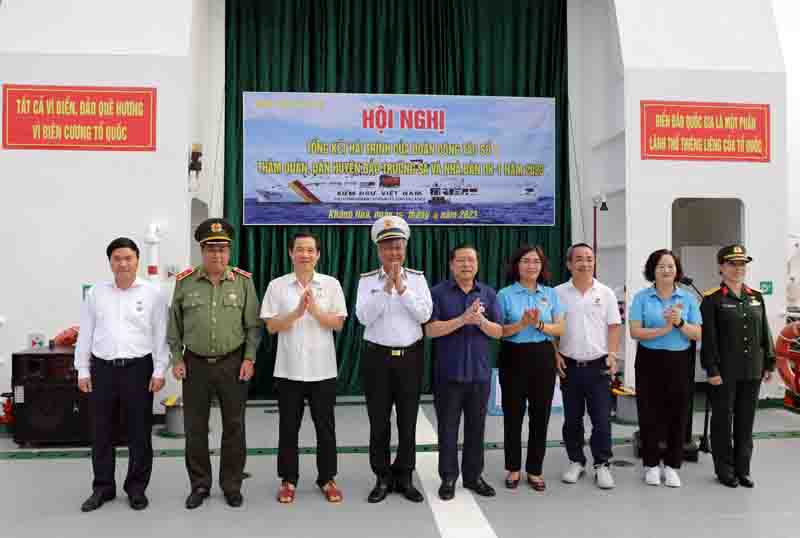 Según la agenda de trabajo, del 10 al 15 de abril la delegación visitó, animó, entregó donaciones, se actualizó de la situación ideológica, la vida cotidiana y los resultados de la tarea de proteger la soberanía del mar e islas del ejército y pueblo residentes en 5 islas en el archipiélago de Truong Sa (Spratly): Song Tu Tay, Sinh Ton, Co Lin, Da Dong A, Truong Sa y plataforma DK1.