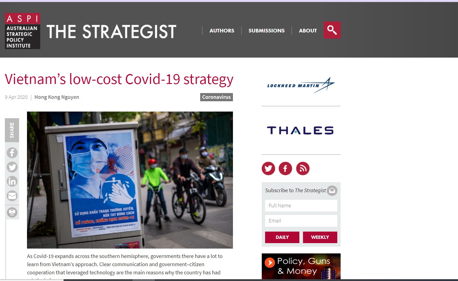 Mientras, un artículo publicado en la plataforma digital de la Casa de Estrategias del ASPI apreció la participación de los medios de prensa vietnamitas en el enfrentamiento al coronavirus. Según experiencias del territorio indochino, resulta importante concentrarse en evaluar tempranamente los eventuales riesgos de la enfermedad, intensificar la divulgación y estrechar la coordinación entre las administraciones locales y las masas para repeler el Covid-19 inclusive con recursos limitados como en el caso de Vietnam, subrayó el reporte. También resaltó el papel del liderazgo del Gobierno y la solidaridad de la comunidad.