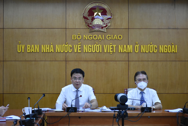 Dirigentes del Comité Estatal sobre vietnamitas en el extranjero, en la charla. (Foto: quehuongonline.vn) |