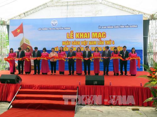 Delegados cortan la banda de inauguración de la exposición (Foto: VNA) |