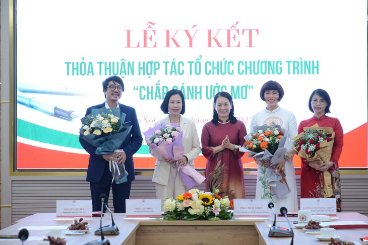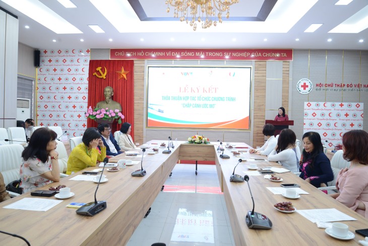 Asistieron al acto de firma que tuvo lugar el miércoles en la sede de la Cruz Roja de Vietnam Bui Thi Hoa, presidenta de esta entidad y encargada de la Junta Directiva de su Fondo; Pho Cam Hoa, jefa de VOV5; Nguyen Si Tien, director del Teatro Tuoi Tre y Phan Thi Bich Thien, presidenta del Foro de Mujeres Vietnamitas en Europa.