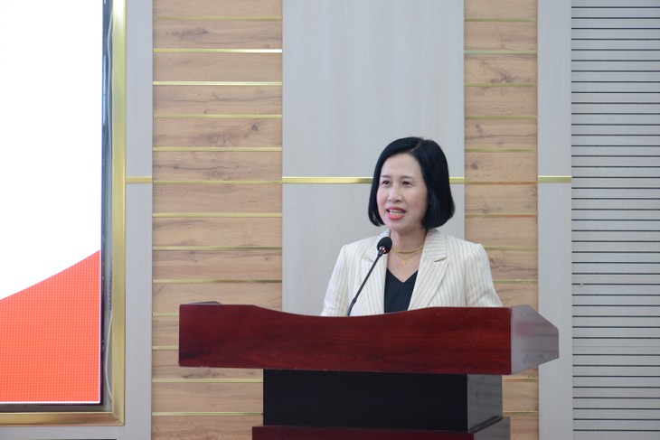 La jefa de VOV5, Pho Cam Hoa, interviene en el acto de firma del convenio. |
