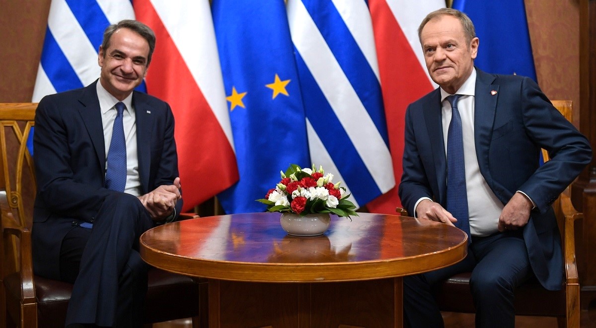 El primer ministro polaco, Donald Tusk (d) y el primer ministro griego, Kyriakos Mitsotakis, reunidos en Varsovia, Polonia, el 12 de abril de 2024. (Foto: PAP/Marcin Obara) |