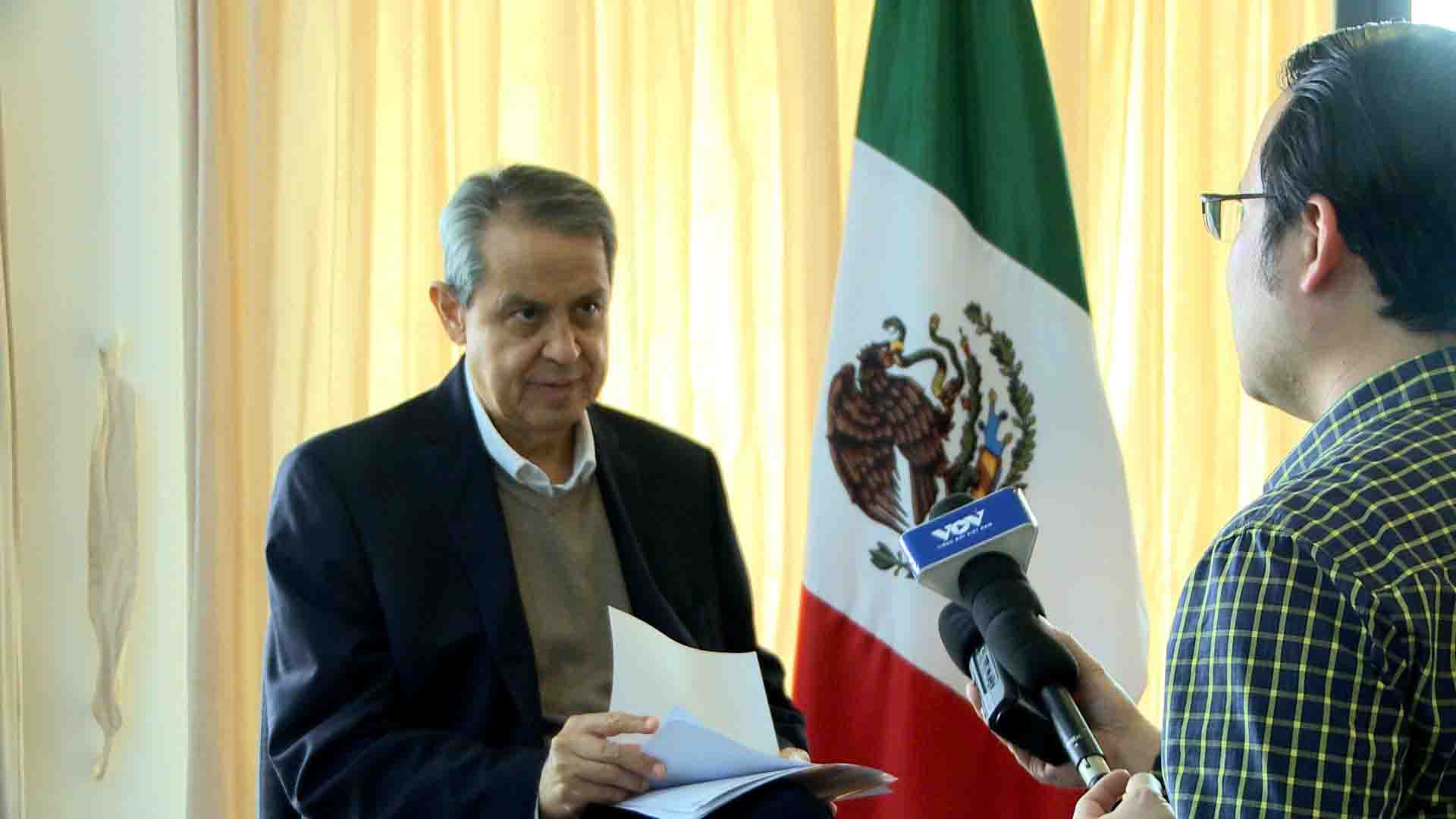 El embajador de México en Vietnam, Alejandro Negrín Muñoz (i), durante la entrevista concedida a los reporteros de la Voz de Vietnam. (Foto: VOV) |