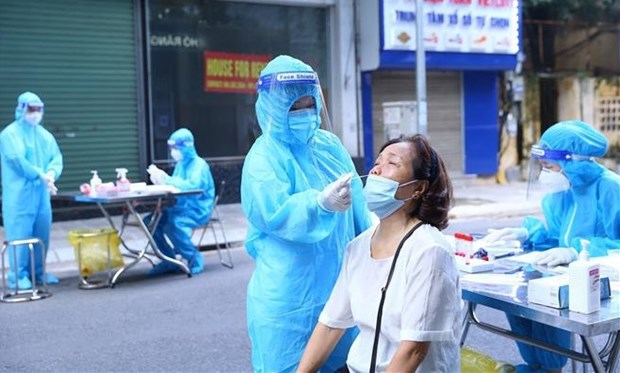 Empleados médicos realizan prueba del covid-19 para pobladores hanoyenses. (Fuente: VNA) |
