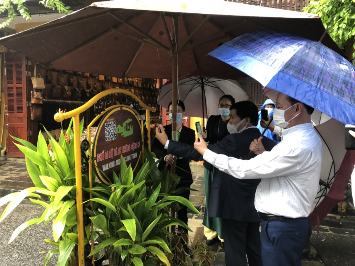Visitantes escaneando códigos QR al visitar la antigua ciudad de Hoi An. (Foto: VOV) |