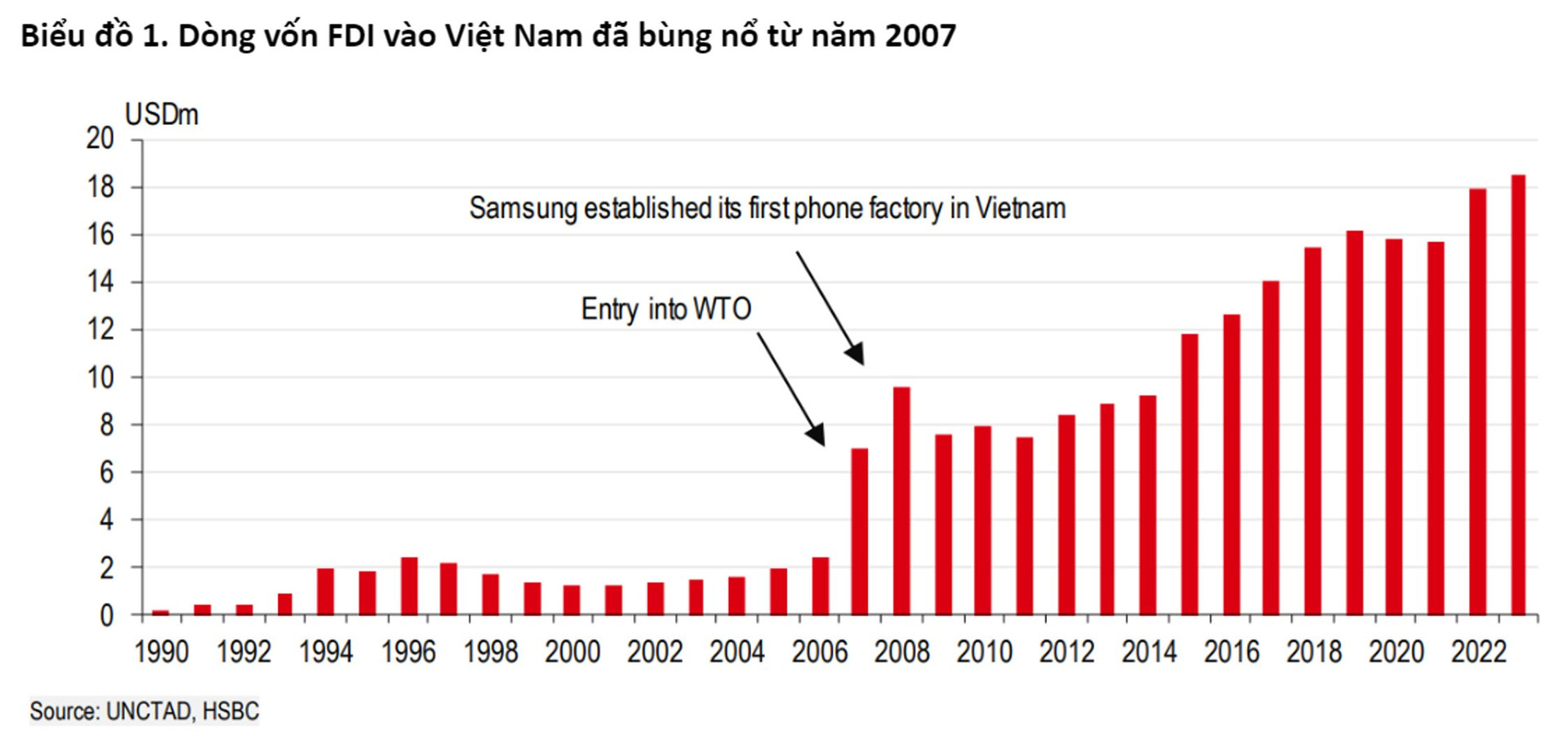 Flujos de IED en Vietnam experimentan súbito aumento desde el 2007. (Fuente: HSBC) |