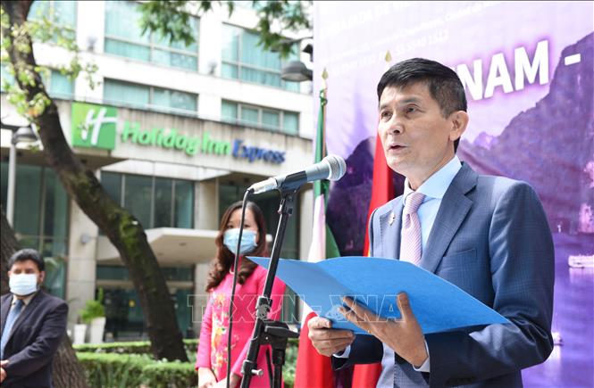 El embajador vietnamita en México, Nguyen Hoanh Nam interviene en la muestra. (Foto: VNA) |
