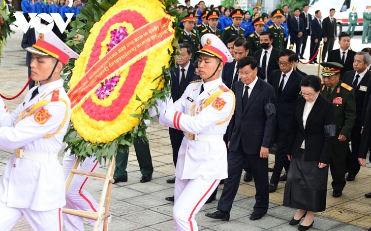El miembro del Buró Político y primer ministro Pham Minh Chinh, al frente de la delegación del Gobierno, el miembro del Buró Político y presidente To Lam, al frente la delegación del Estado, el miembro del Buró Político y titular de la Asamblea Nacional Tran Thanh Man, al frente de la delegación del Parlamento y el miembro del Buró Político y presidente del Comité Central del Frente de la Patria de Vietnam, Do Van Chien, al frente de una delegación de esta organización de masas, rindieron homenaje al difunto líder.