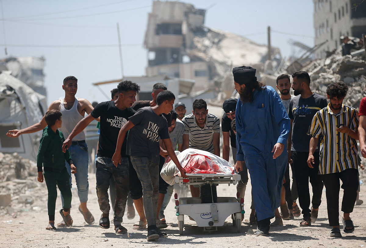 El cuerpo de un palestino abatido tras un ataque israelí el 19 de junio de 2025. (Foto: REUTERS/Mahmoud Issa) |