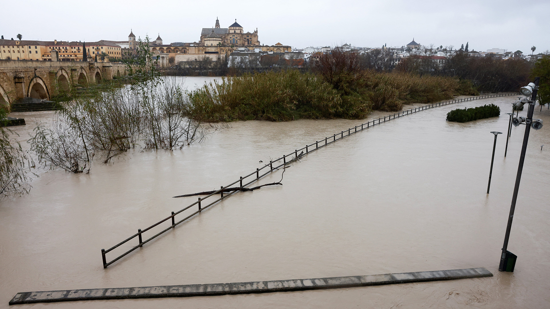 El nivel del río Guadalquivir se eleva tras las intensas lluvias provocadas por la tormenta Marta, que azotó varias regiones de España, el 7 de febrero de 2026. (Foto: REUTERS/Jon Nazca) |