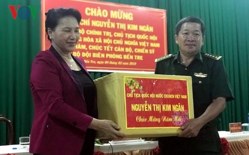 La líder de la Asamblea Nacional se actualizó del trabajo y la vida de los oficiales y les compartió la empatía con las dificultades que enfrentan en el desempeño de la misión. De igual modo les felicitó un año nuevo feliz y próspero y reafirmó la necesidad de mantener los esfuerzos de superación para aumentar la confianza popular y colaborar con las autoridades de Ben Tre para cumplir exitosamente los objetivos de desarrollo socioeconómico y las tareas de seguridad y defensa local en 2019.