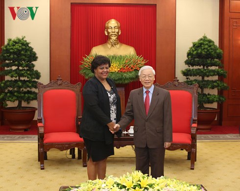 En el encuentro, Nguyen Phu Trong afirmó la política coherente de Vietnam de respaldar la causa revolucionaria de la isla caribeña y expresó la disposición de su país de compartir experiencias en su proceso de renovación para respaldar la actualización del modelo de desarrollo socioeconómico cubano.