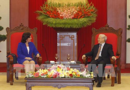 En la cita, el máximo líder partidista expresó su confianza en que la diplomática realice grandes contribuciones en la consolidación y la promoción de la hermandad ejemplar, la amistad histórica, la cooperación integral y la solidaridad fiel entre los dos Partidos, Estados y pueblos.