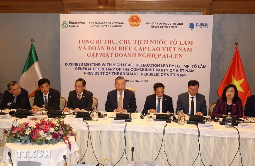 Asimismo, To Lam invitó a las empresas irlandesas a colocar más inversiones en Vietnam. Afirmó que su país siempre da la bienvenida a las empresas irlandesas para que amplíen sus proyectos de cooperación e inversión en el territorio indochino.