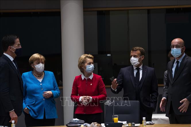 Líderes de la UE en la cumbre sobre el plan de recuperación para el tiempo postpandémico en Bruselas, Bélgica, el 18 de julio de 2020. (Foto: AFP/VNA) |