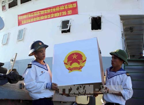 (VOVworld) – Este jueves, dos barcos de la Marina de Vietnam partieron del puerto militar de Cam Ranh, en la provincia de Khanh Hoa rumbo al archipiélago de Truong Sa, llevando urnas, papeletas, tarjetas de votación, cuños de las circunscripciones electorales, la lista y bibliografía de candidatos en aras de desplegar los comicios de la Asamblea Nacional en su decimocuarta legislatura y del Consejo Popular local, período 2016- 2021.