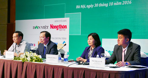 ![]() Dirigentes de la Asociación de Agricultores, el Banco Estatal de Vietnam y el periódico "Zonas Rurales de hoy" en el seminario del 30 de octubre