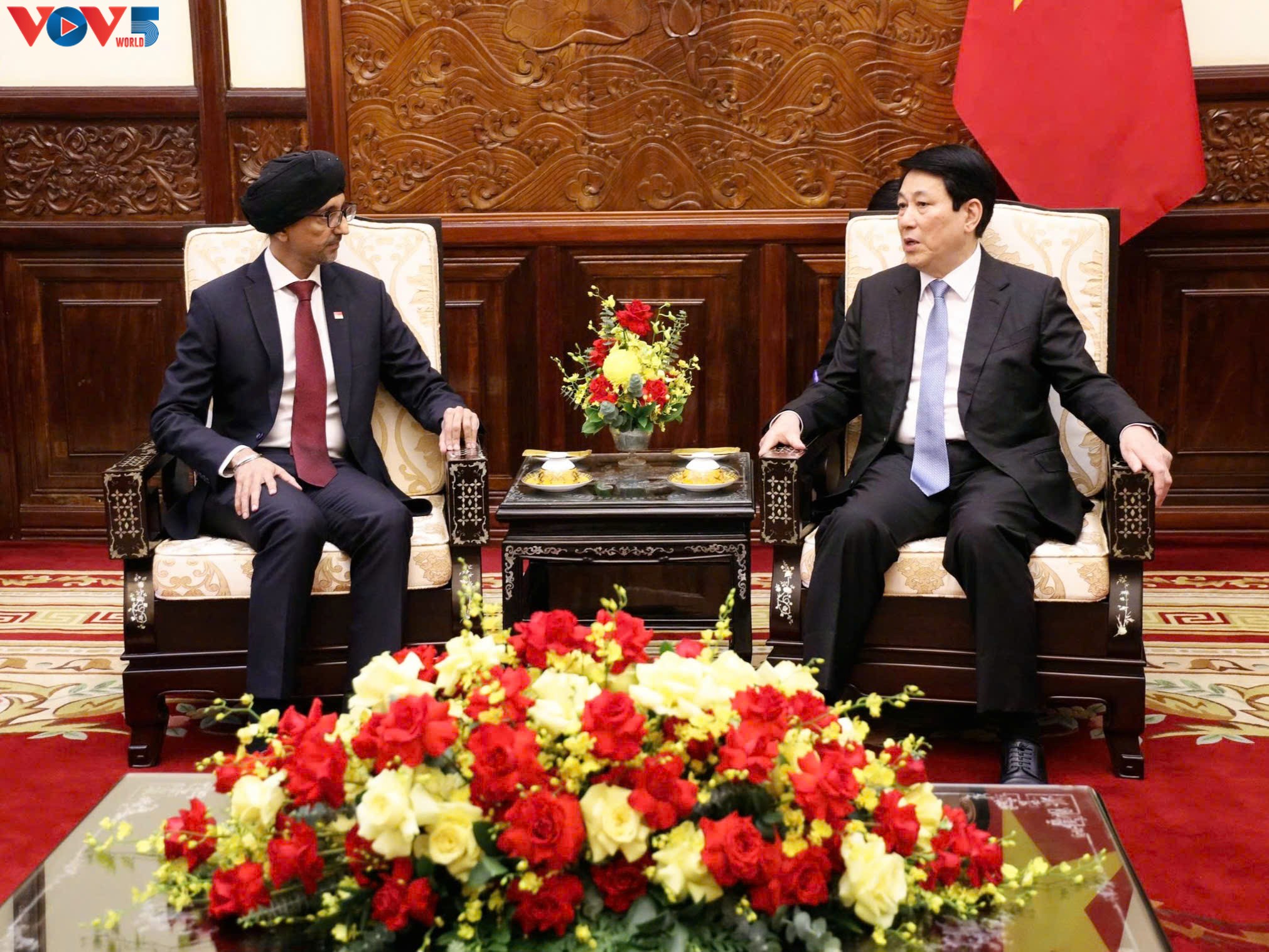 El presidente de Vietnam, Luong Cuong (dcha.), recibe al embajador de Singapur, Rajpal Singh. (Foto: VOV) |