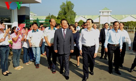 El presidente Truong Tan Sang con administradores y funcionarios de la Sociedad Anónima Viet Nam Moc Bai |