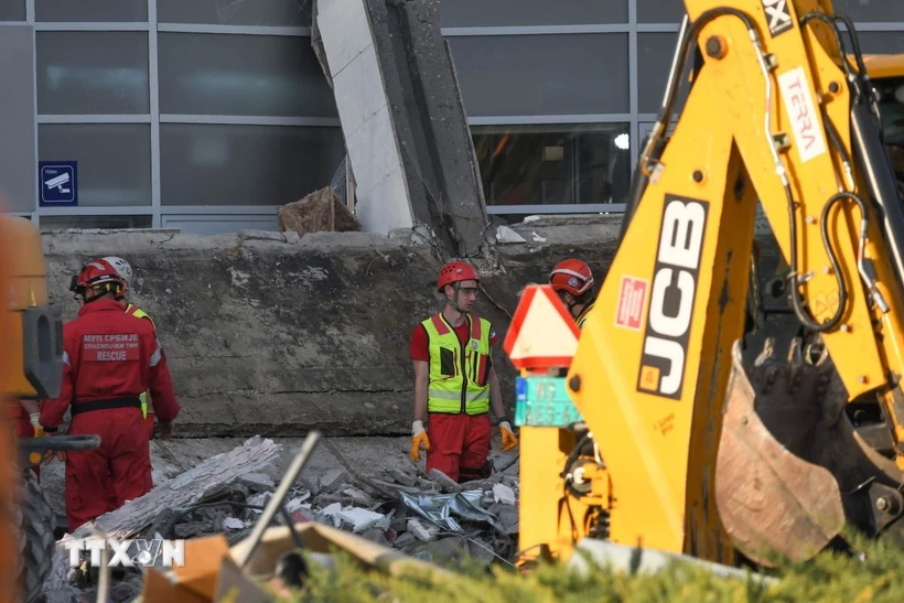 La escena del derrumbe del techo de la estación de tren en Novi Sad, Serbia, el 1 de noviembre de 2024. (Foto: VNA) |