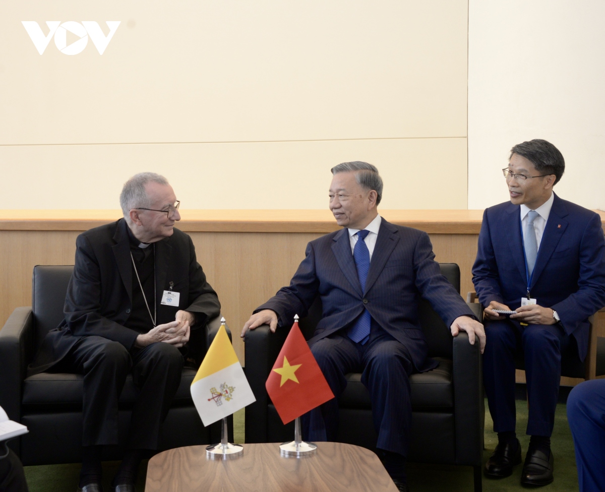 El encuentro entre el líder del Partido Comunista y del Estado de Vietnam, To Lam, y el secretario de Estado del Vaticano, cardenal Piertro Parolin. |