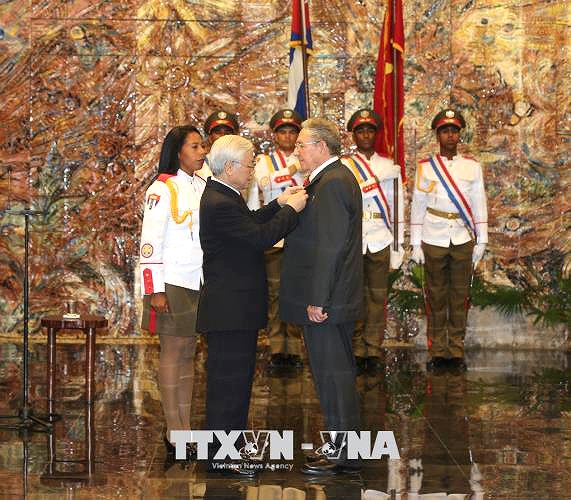 Antes de terminar su agenda de trabajo, Nguyen Phu Trong se reunió con el presidente del Instituto Cubano de Amistad con los Pueblos (ICAP), héroe nacional Fernando González, y con la vicepresidenta de la Asociación de Amistad Cuba-Vietnam, Marta Rojas. El máximo líder político de la nación indochina agradeció la recepción de la parte cubana, considerándola como una contribución importante al reforzamiento de las relaciones bilaterales. Entretanto, el presidente del ICAP, Fernando González afirmó que los logros de los encuentros entre líderes de los dos países son testimonios elocuentes de la solidaridad entre Hanoi y La Habana. De esta manera, se comprometió a coordinar con la Asociación de Amistad Cuba-Vietnam para promover aún más dicho legado diplomático a fin de satisfacer las expectativas de cada pueblo.