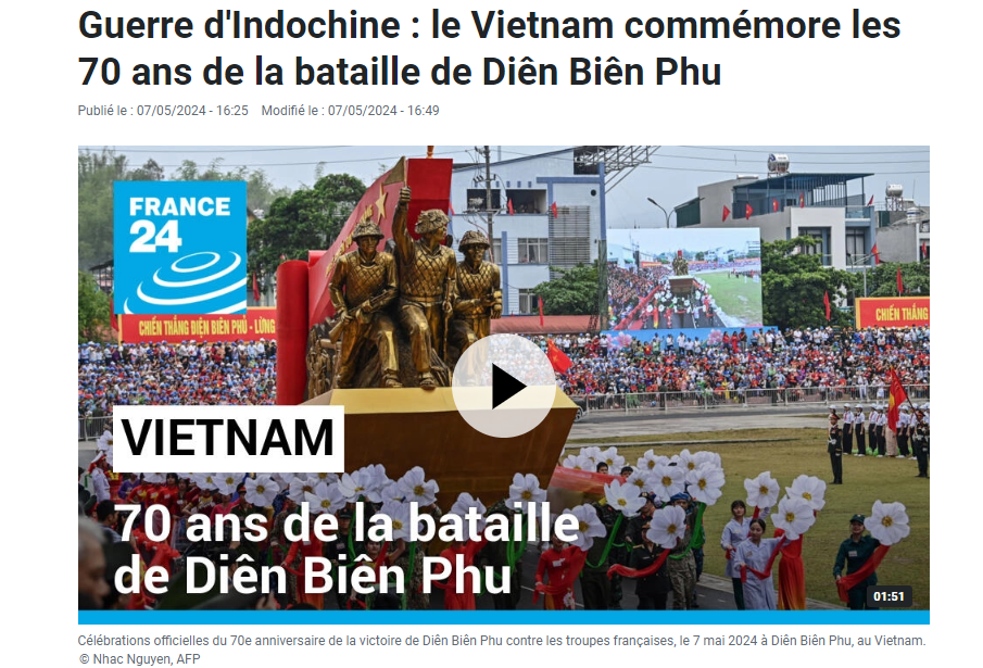 Con el titular “70 años de Dien Bien Phu: Vietnam celebra un mitin solemne con Francia como invitada”, el diario Le Figaro describió detalladamente la celebración efectuada el 7 de mayo en la ciudad homónima de la provincia norvietnamita de Dien Bien. Según el artículo, la presencia de Sébastien Lecornu y Patricia Mirallès en estas conmemoraciones es prueba de una reconciliación en las relaciones binacionales. El medio comentó sobre la actual amistad entre dos naciones, que alguna vez fueron viejos enemigos.